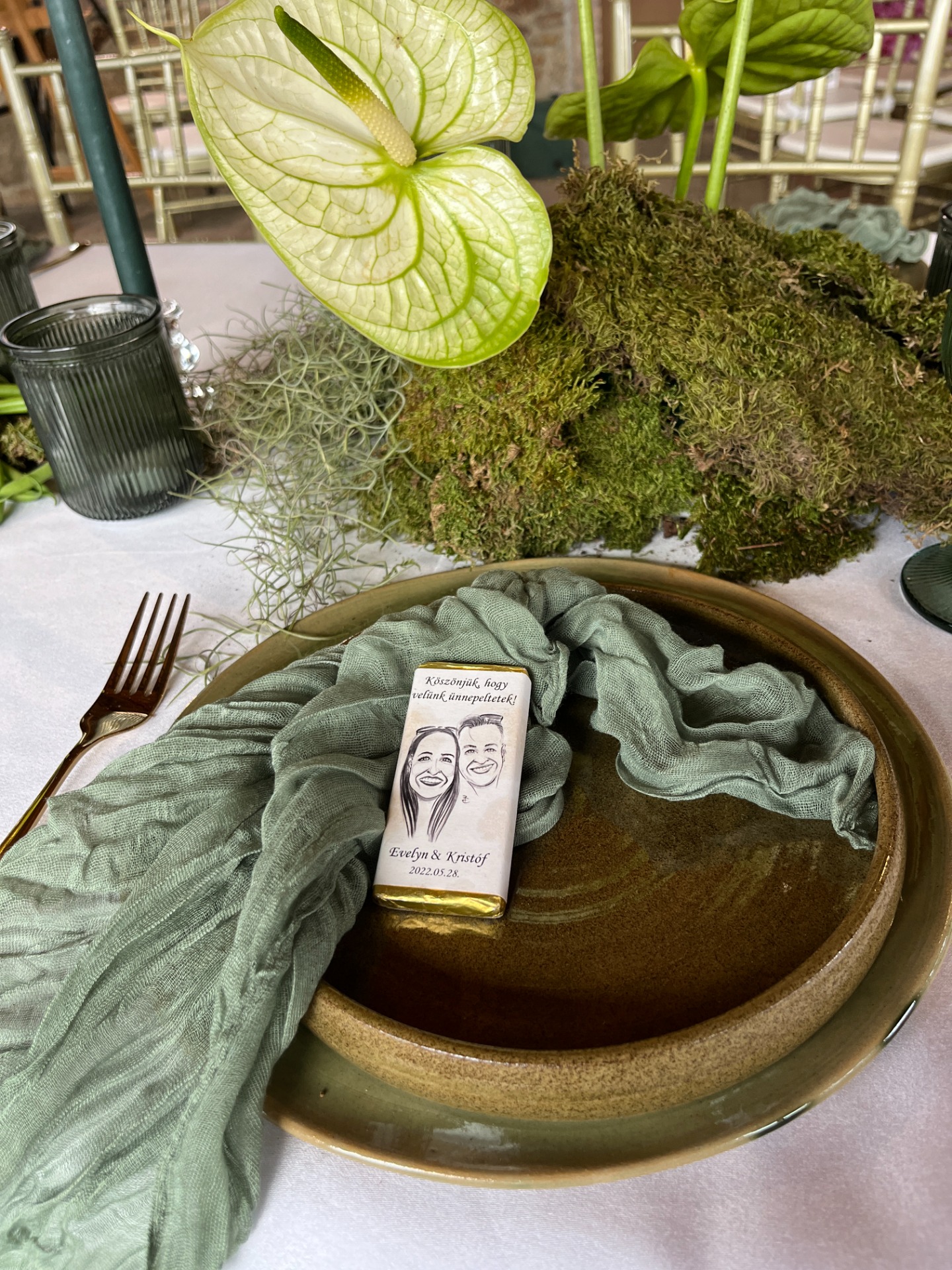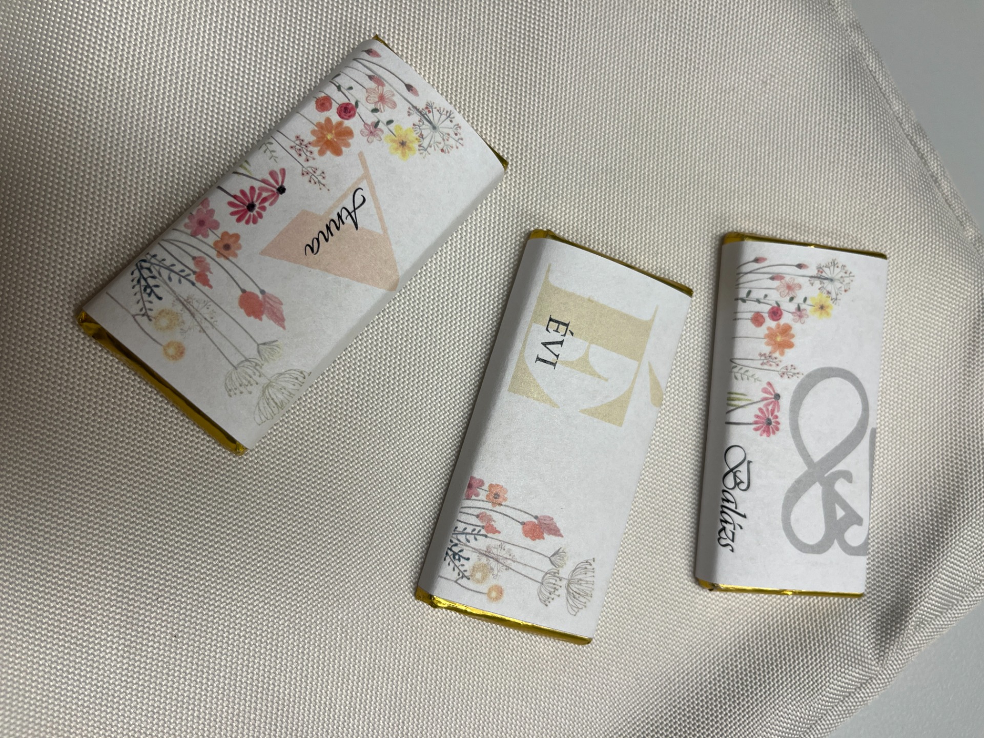 Tökéletes, személyes, egyedi köszönőajándék lehet egy kis szelet csoki, a rólatok készült karikatúrával, vagy a vendégeitek nevével, így a csoki egyben az ültetőkártya is. Ez az ajándék egyszerű és nagyszerű! Ezt senki sem fogja az asztalon "felejteni". A csokit mindenki szereti! Akár ezüst vagy arany lakodalomra is kiváló meglepetés lehet.